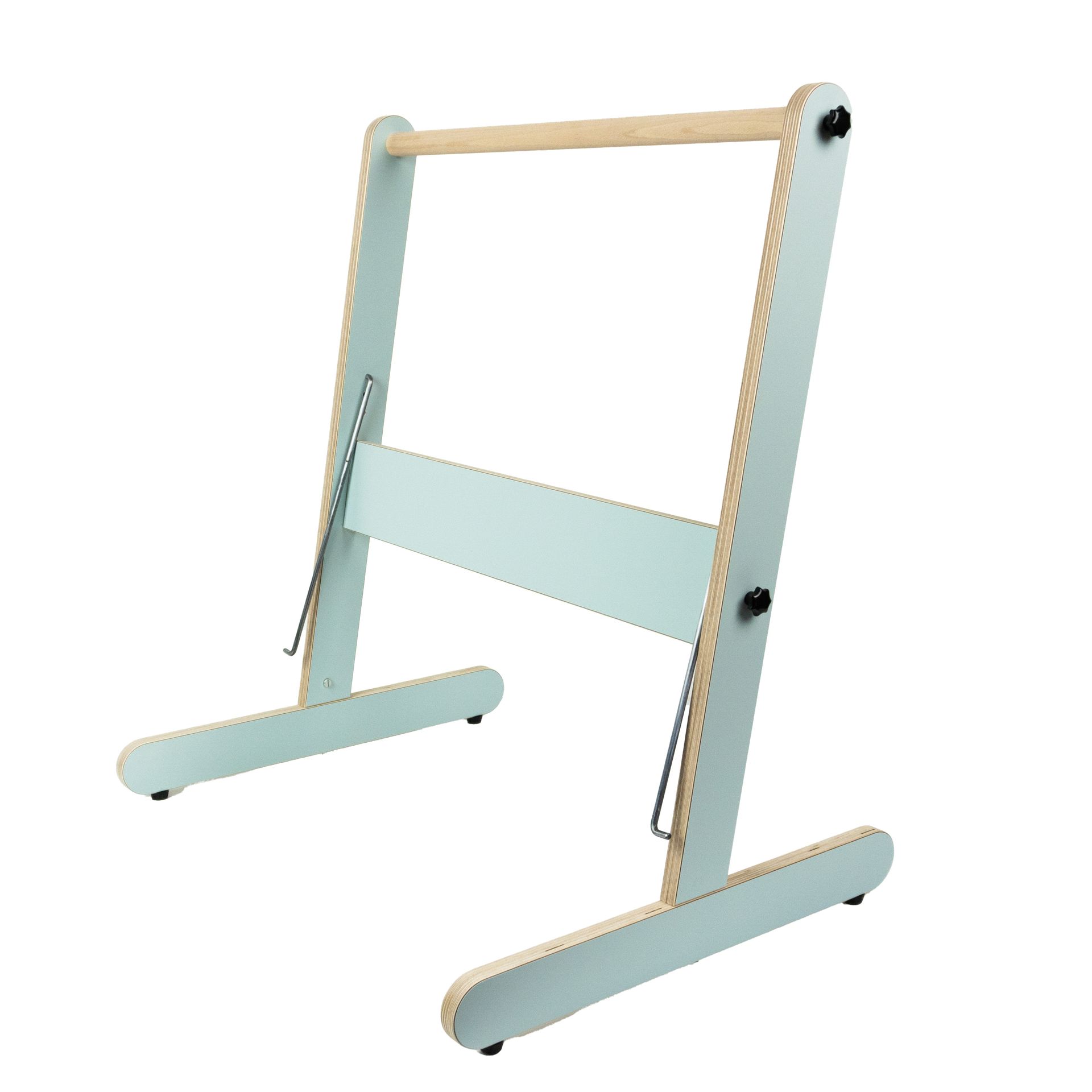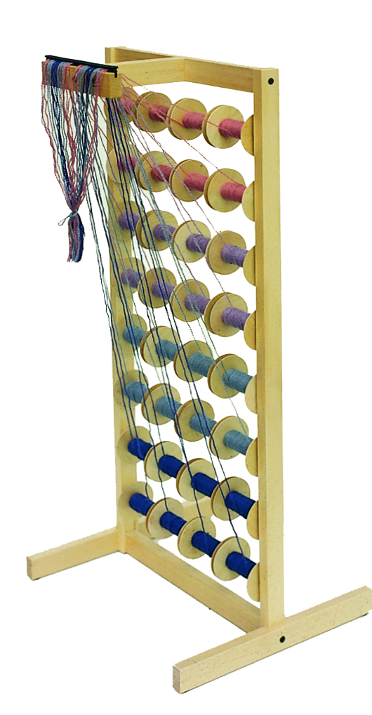 Bij het maken van de ketting kun je met het klossenrek gemakkelijk de draden in een bepaalde volgorde rangschikken. Dit klossenrek wordt met 32 klossen geleverd. #WA0190