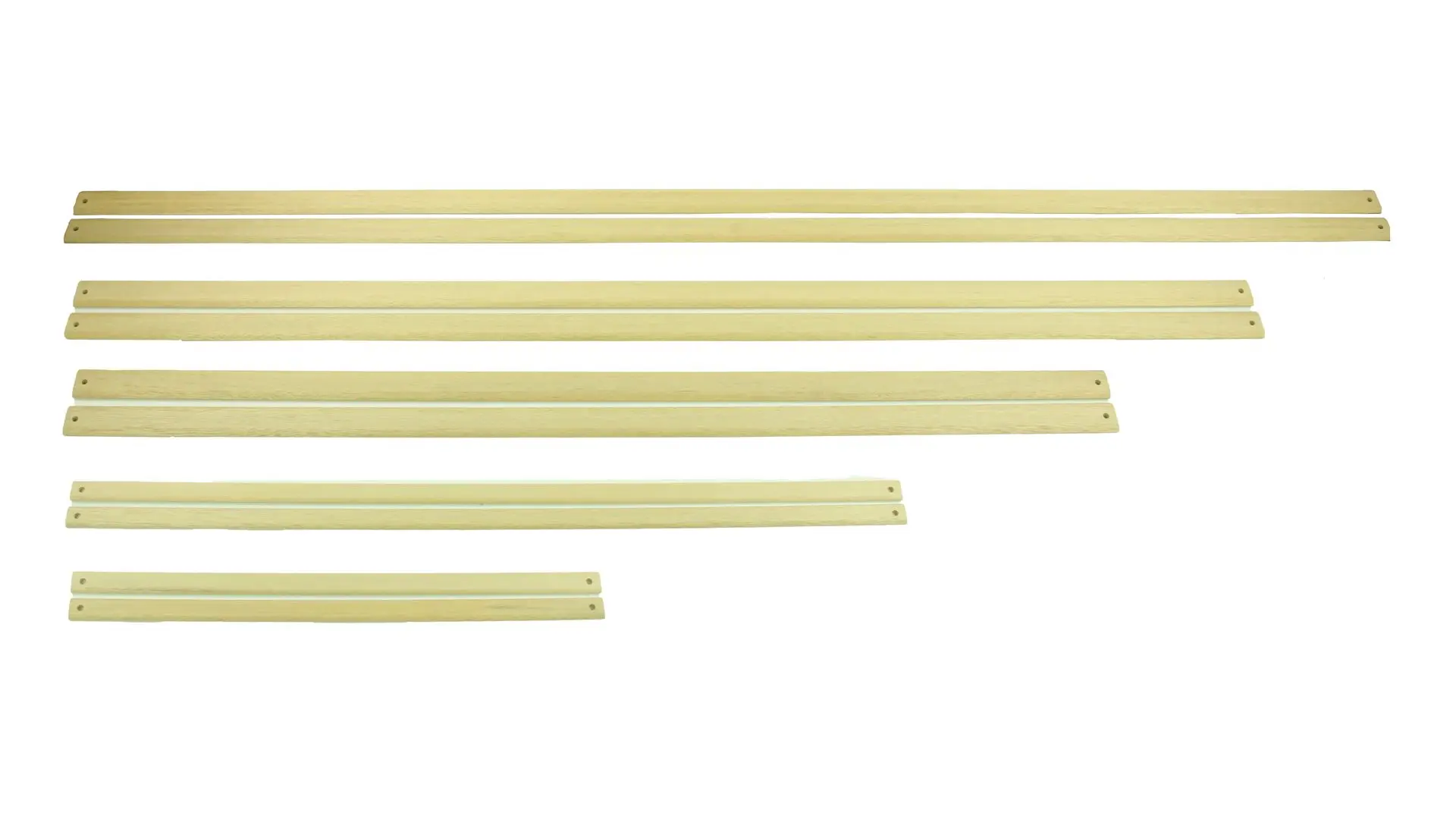 Met dobby bars (kieslatjes) programmeer je eenvoudig je weefpatroon bij een mechanische dobby. Elke lat heeft genummerde gaatjes die overeenkomen met de schachten; door nokjes te plaatsen bepaal je welke schachten omhoog gaan. Worden geleverd per set van 10.