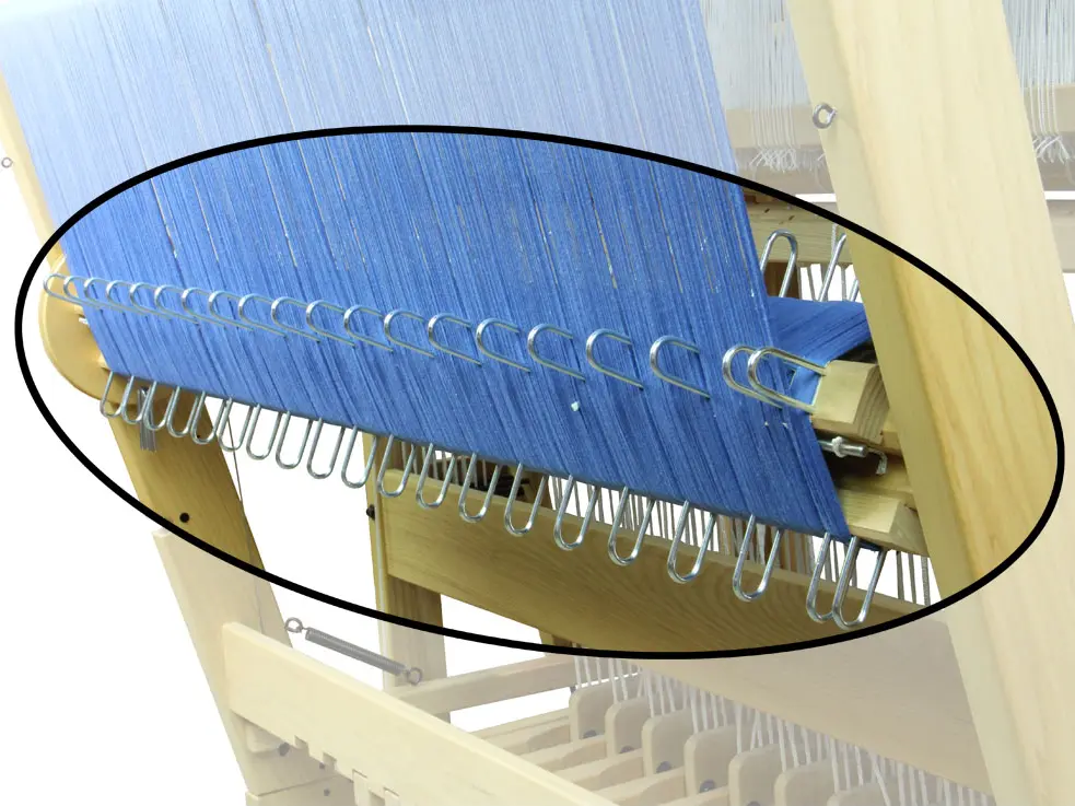 Latten die aan de voorkant van het getouw worden gebruikt om de ketting of het weefsel aan vast te binden.