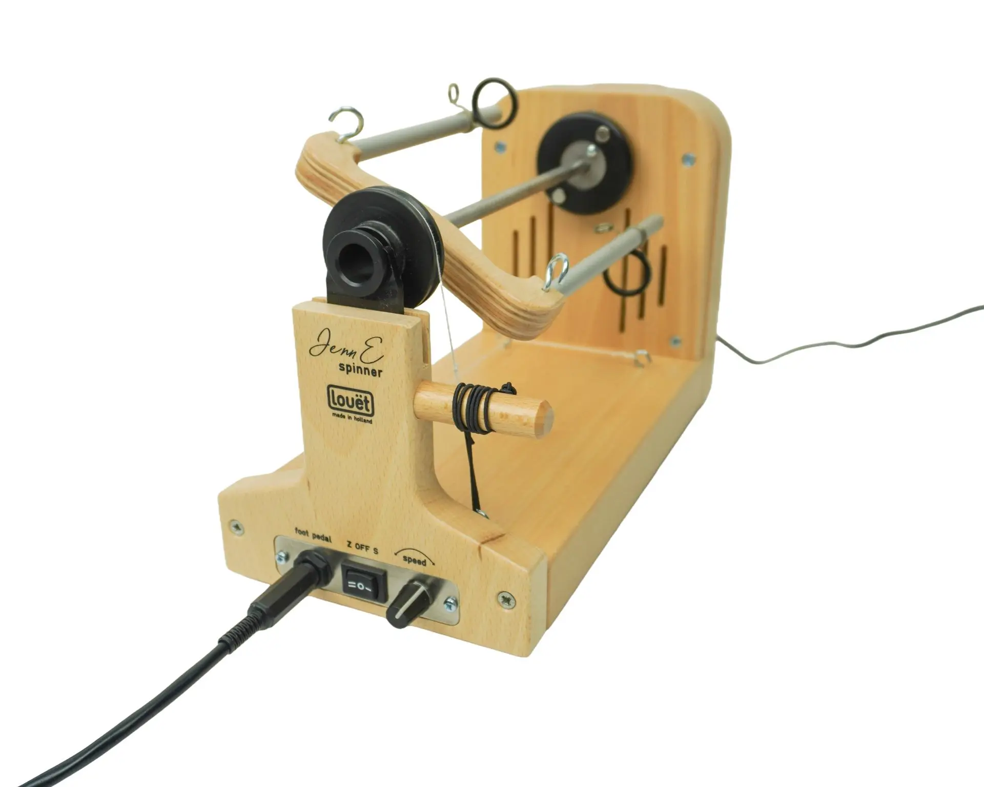 De naam van de Louët E-Spinner is Jenn-E, vernoemd naar een spindelframe uitgevonden door James Hargreaves in 1764. Dit vonden wij een mooie verwijzing naar de evolutie van het spinnen en het verschil tussen voettrap en elektrisch.